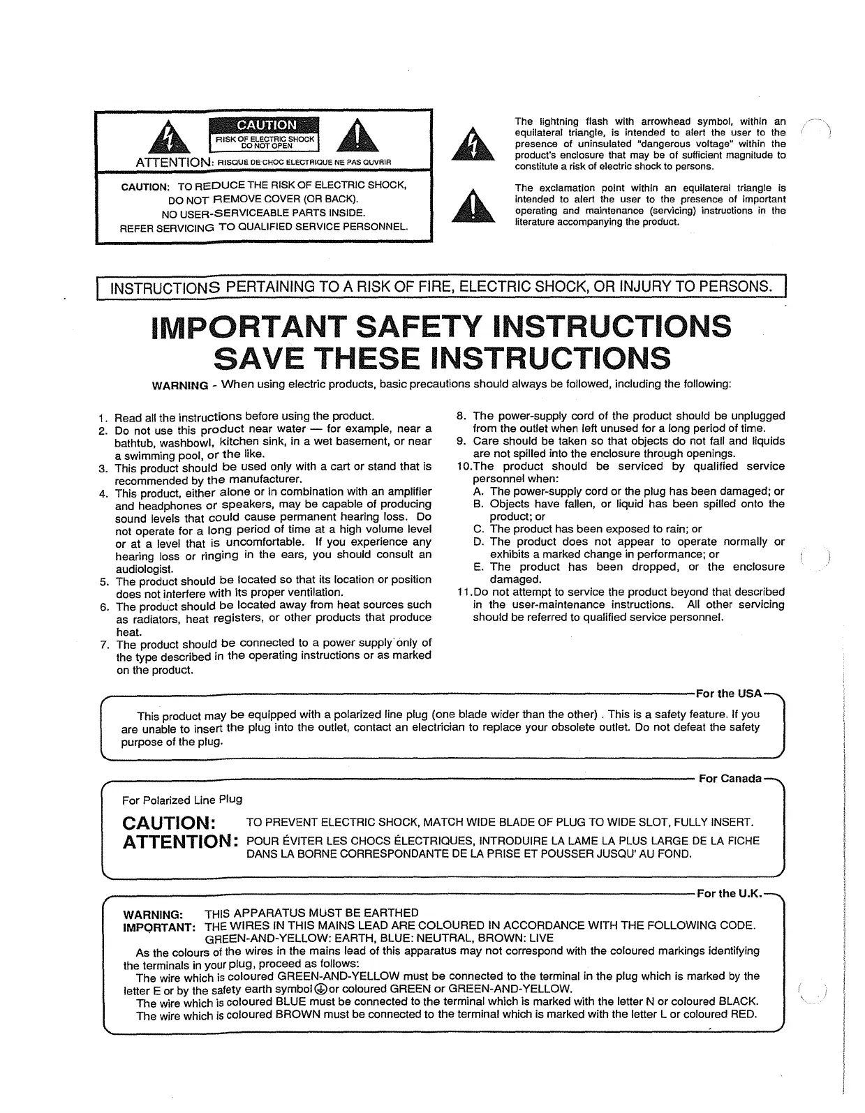 INSTRUCTIONS PERTAINING TO A RISK OF FIRE, ELECTRIC SHOCK, OR INJURY TO PERSONS.