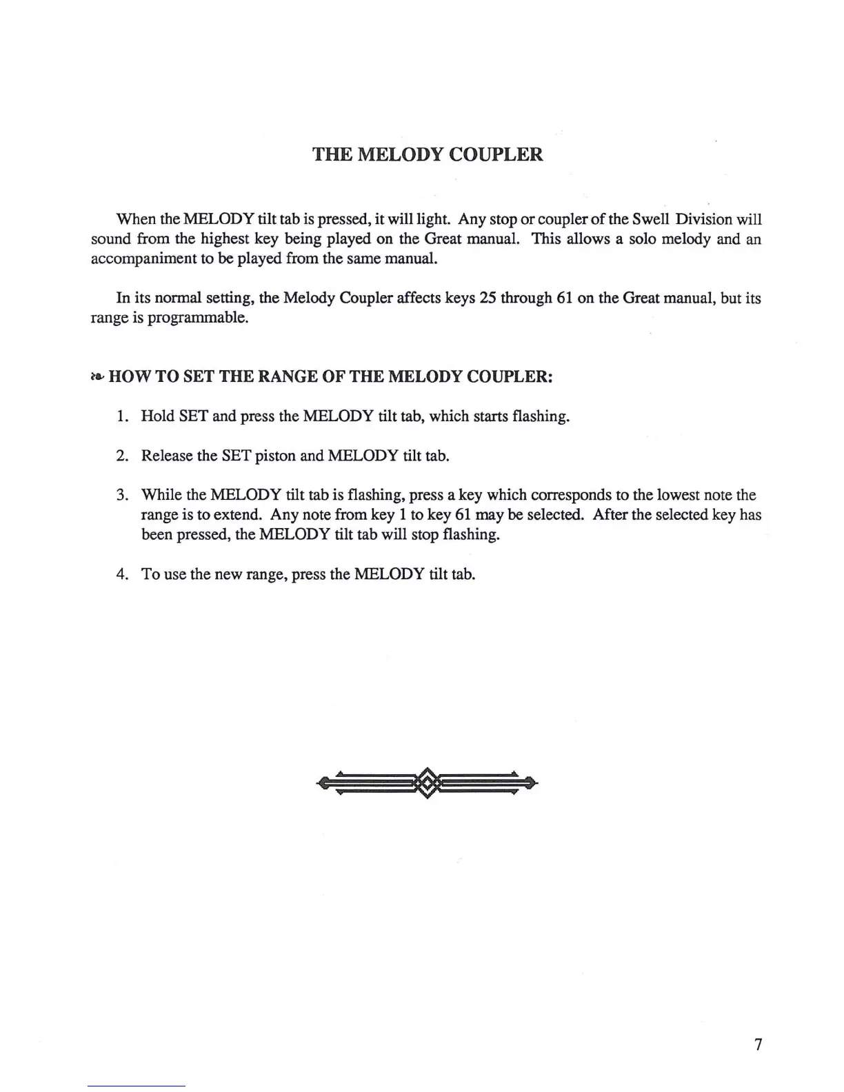 In its normal setting, the Melody Coupler affects keys 25 through