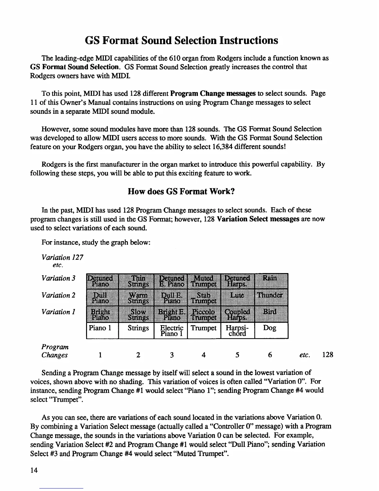 Rodgers 610 - GS Format Sound Selection Instructions