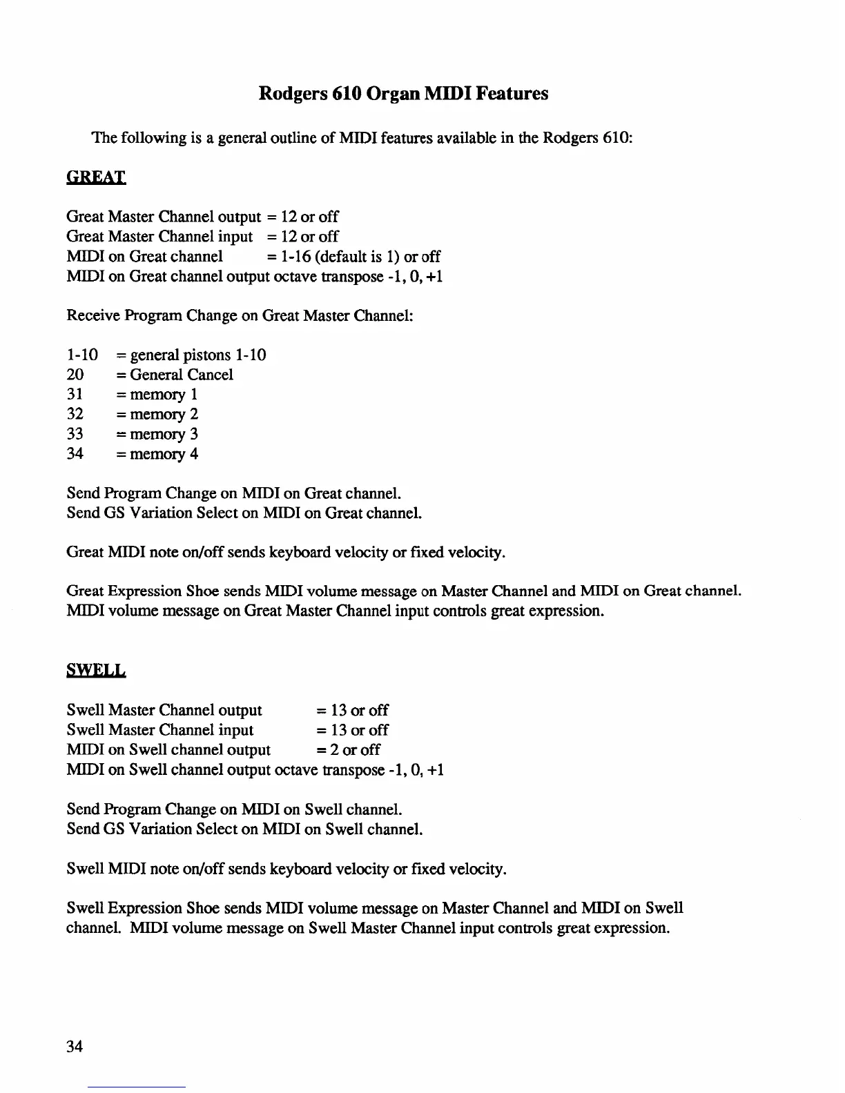 Rodgers 610 - MIDI Features