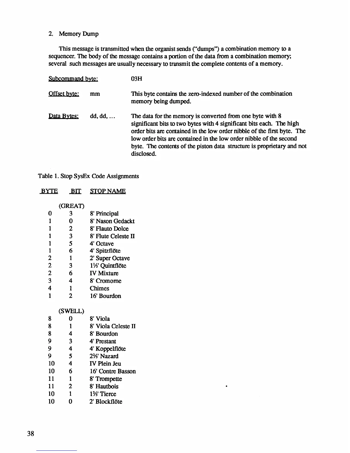 Rodgers 610 - Memory Dump; Stop Sysex Code Assignments