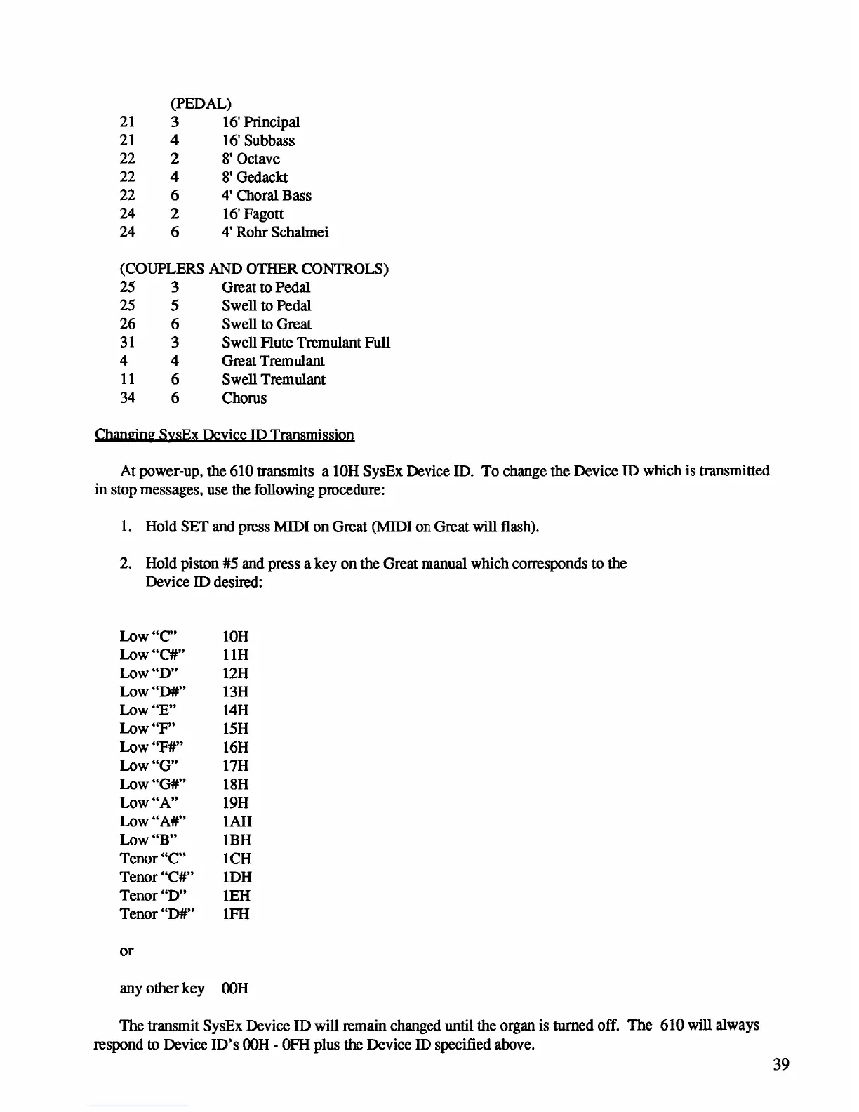 Rodgers 610 - Changing Sysex Device ID Transmission