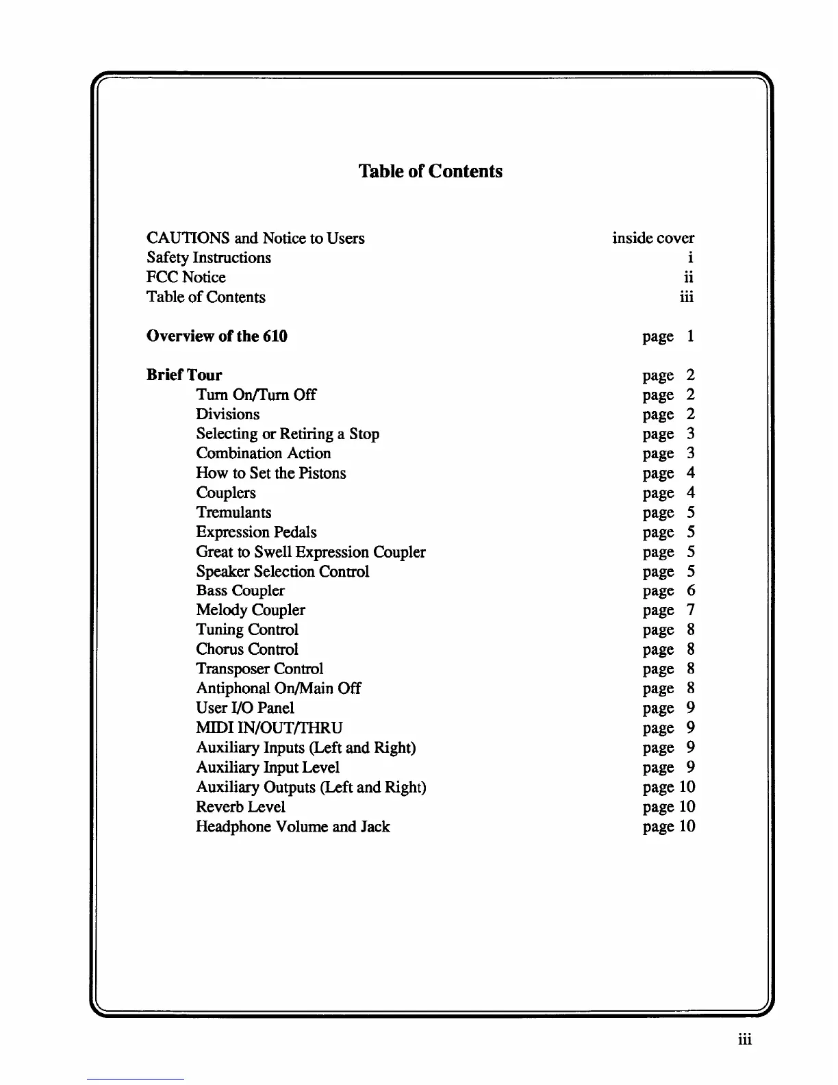 Rodgers 610 - Table of Contents