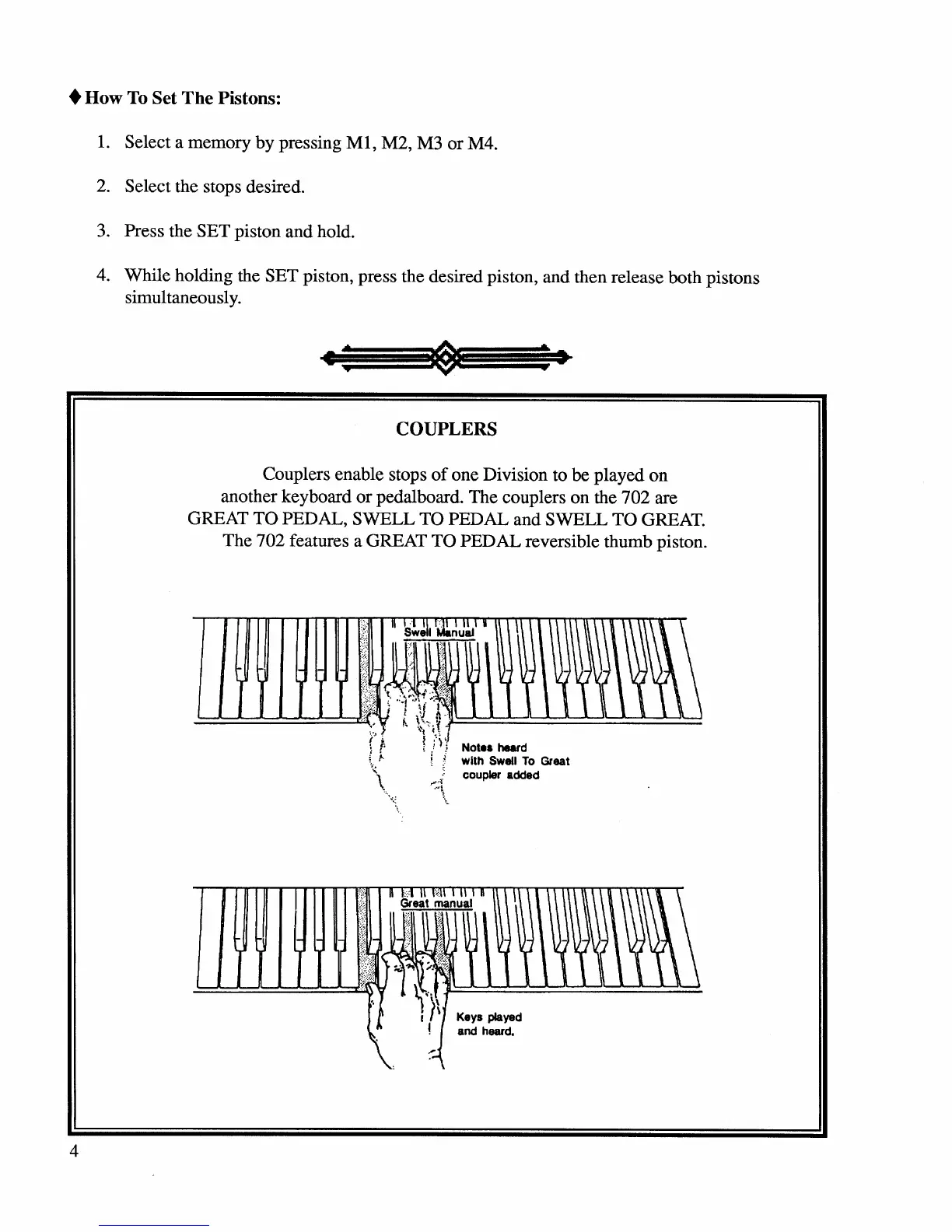 GREAT TO PEDAL, SWELL TO PEDAL and SWELL TO GREAT.