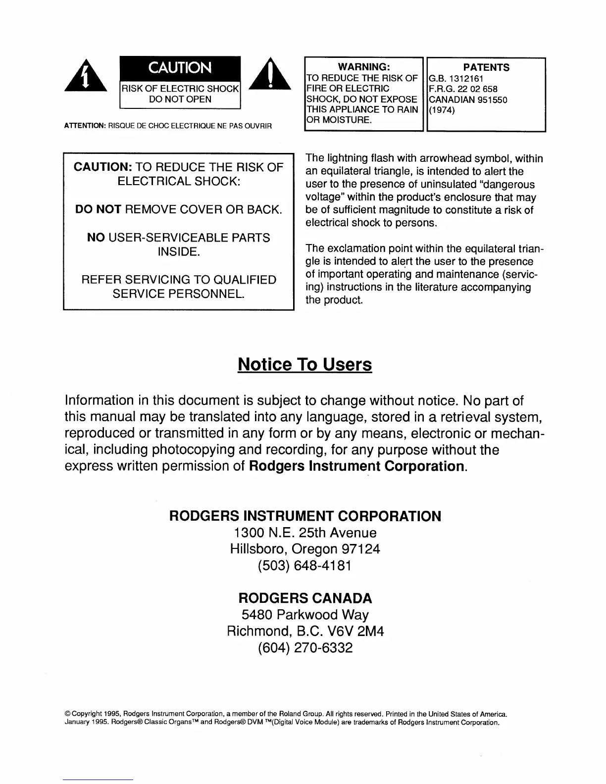 © Copyright 1995, Rodgers Instrument Corporation, a member