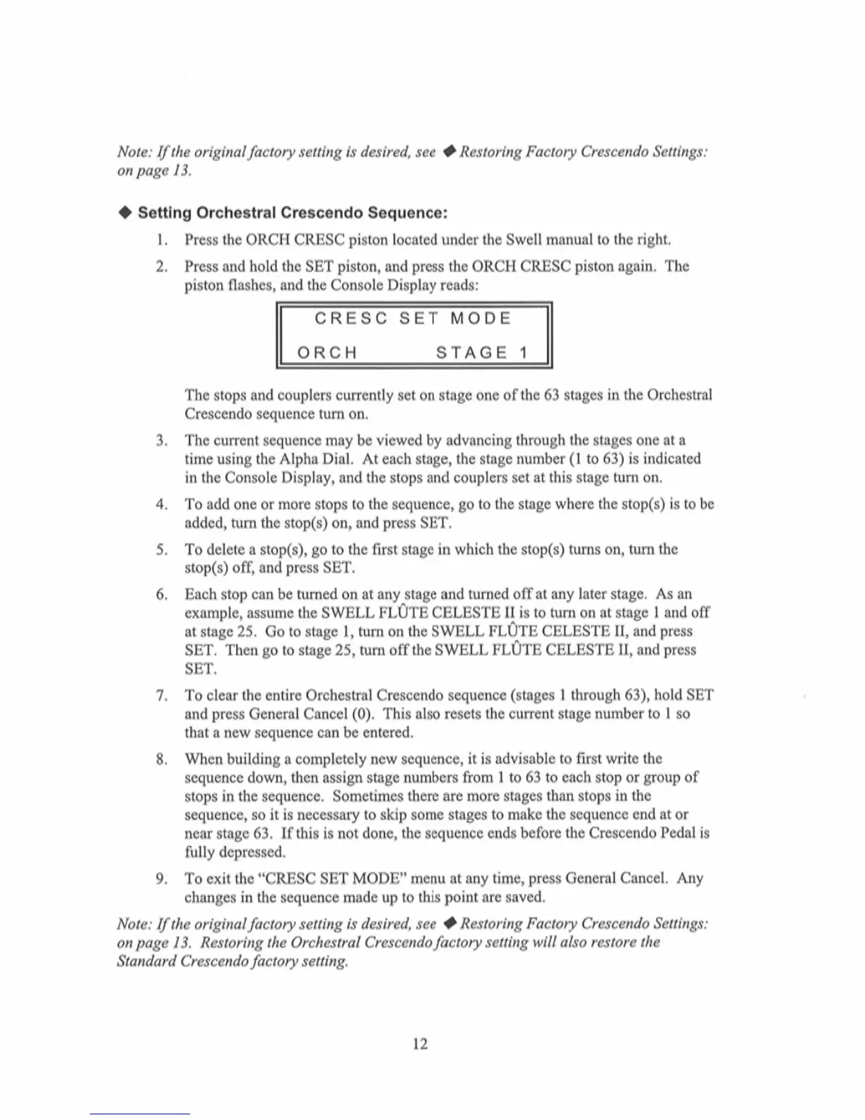 Rodgers 950B - Setting Orchestral Crescendo Sequence