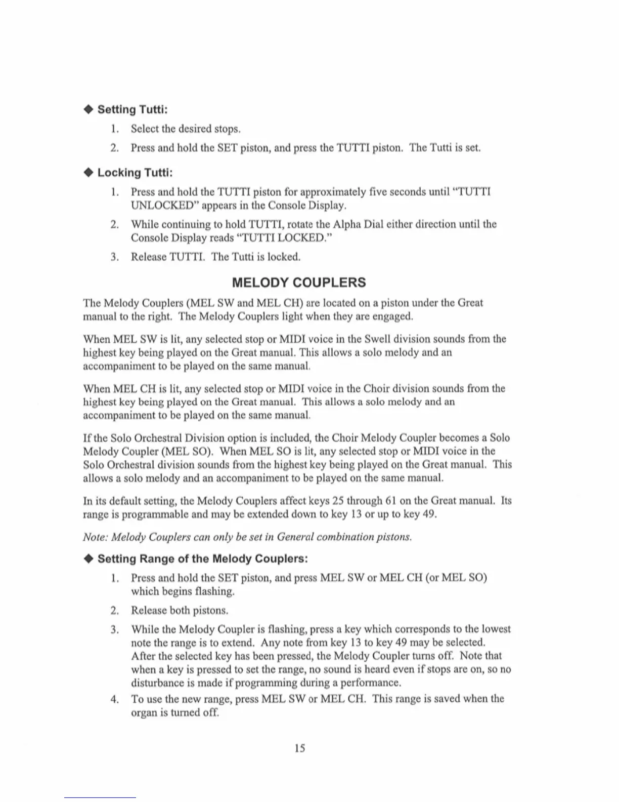 Rodgers 950B - Melody Coupler Configuration