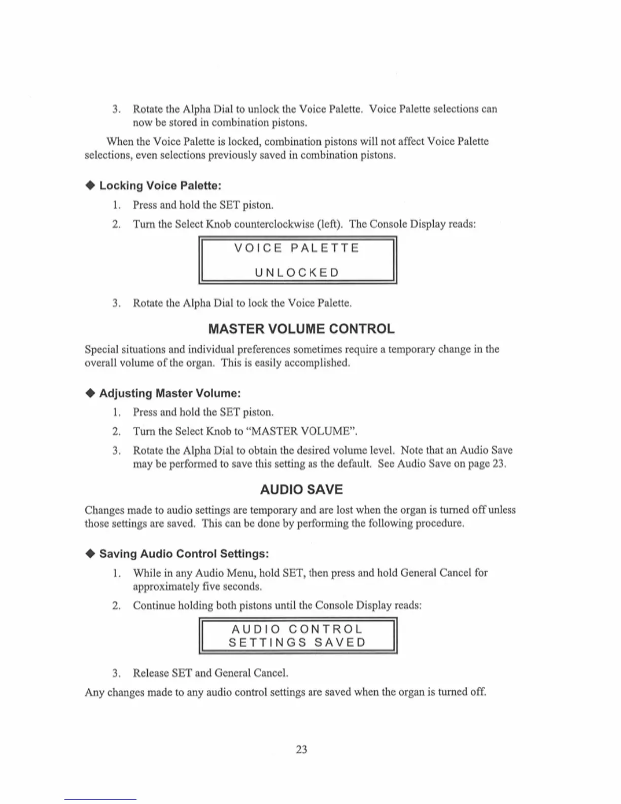 Rodgers 950B - Master Volume Control; Adjusting Master Volume Level