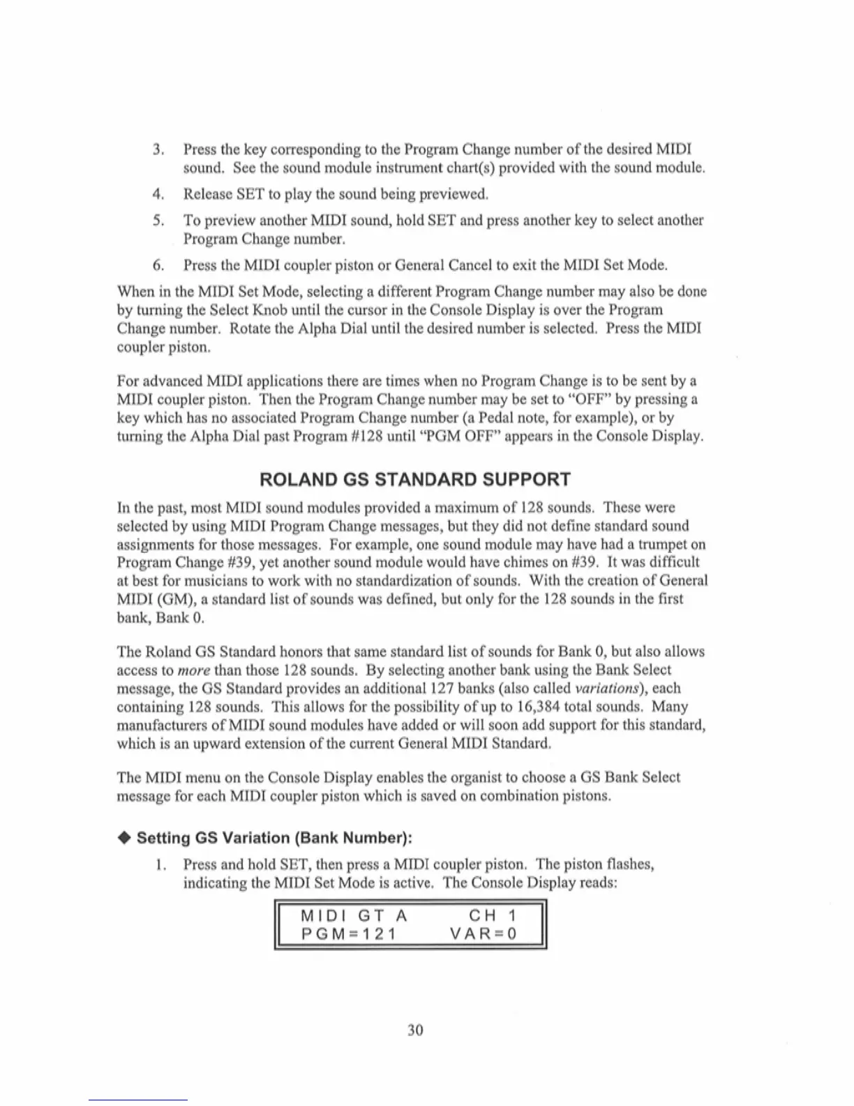 Rodgers 950B - Roland GS Standard Support; Setting GS Variation (Bank Number)