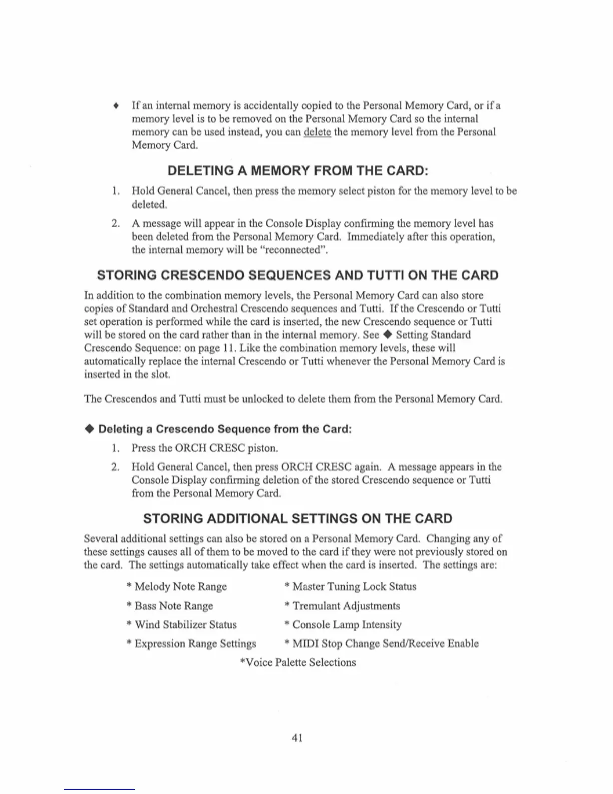 Rodgers 950B - Storing Crescendo Sequences on Memory Card; Deleting Crescendo Sequences from Card