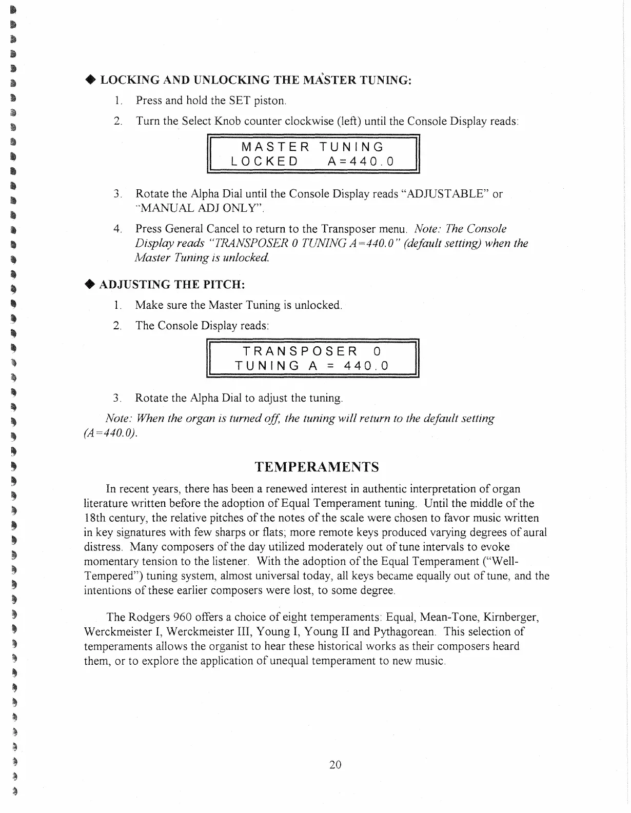 eight temperaments: Equal, Mean-Tone, Kirnberger,