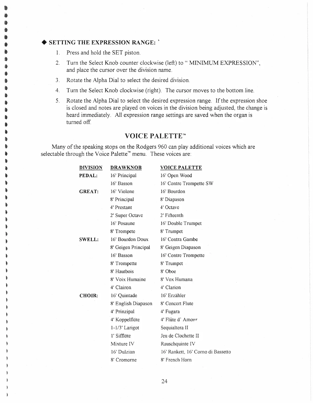 the speaking stops on the Rodgers 960 can play additional voices which are