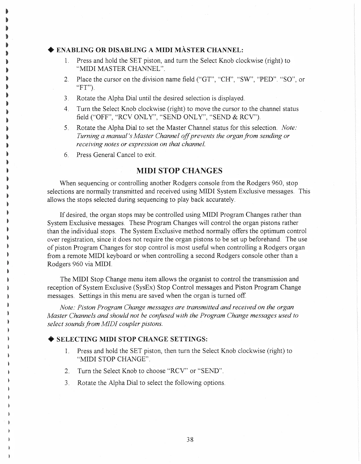 controlling another Rodgers console from the Rodgers 960, stop