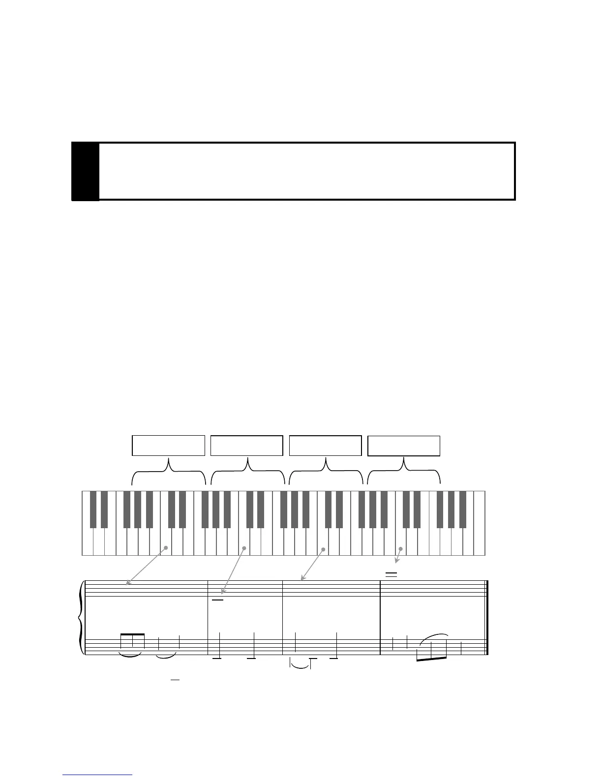 depressed on that key to the end of the sound. Play only one key at a time.