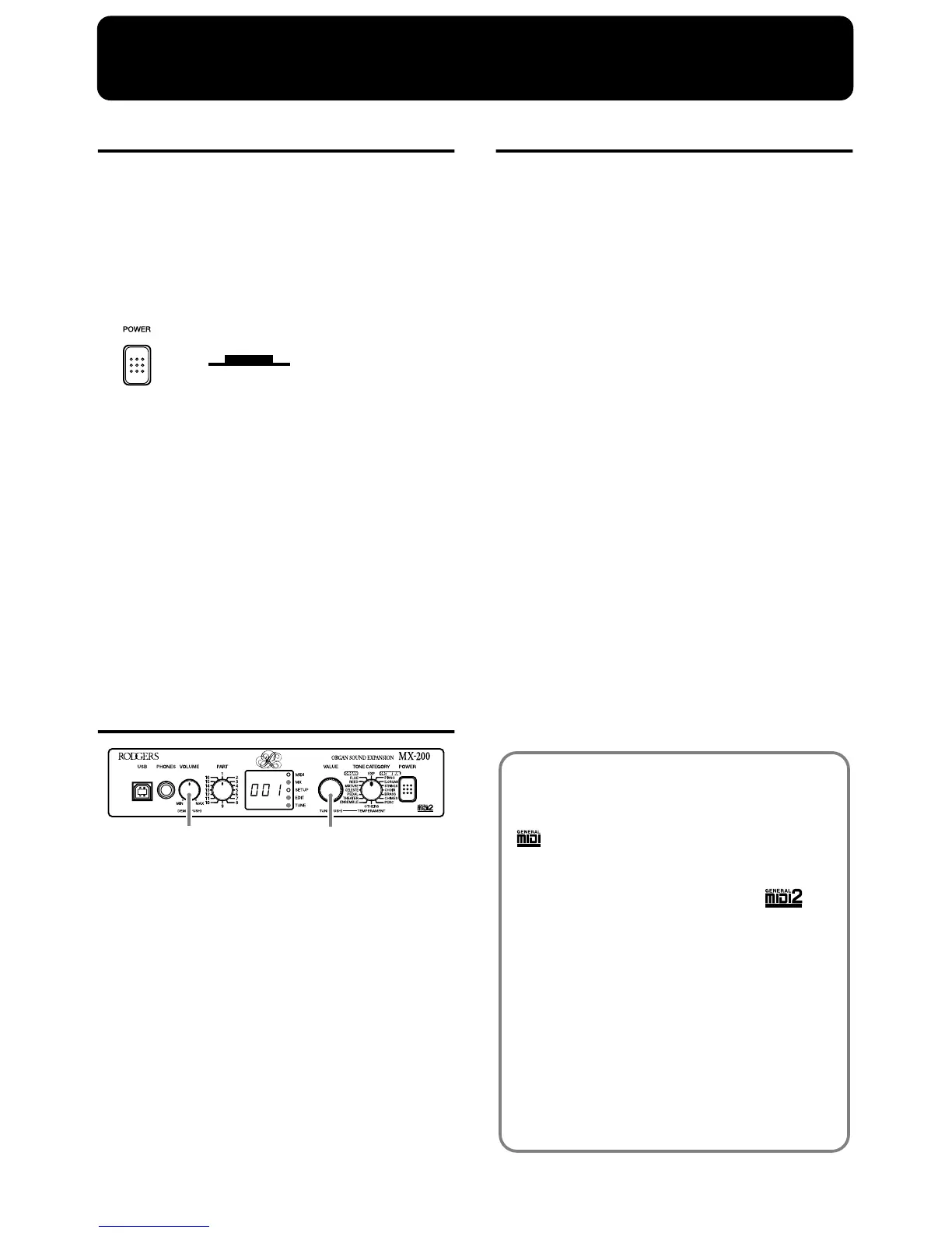 turns on or off along with the organ’s power. There is no need