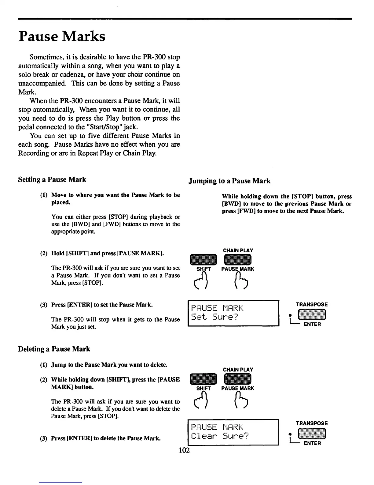 each song. Pause Marks have no effect when you are