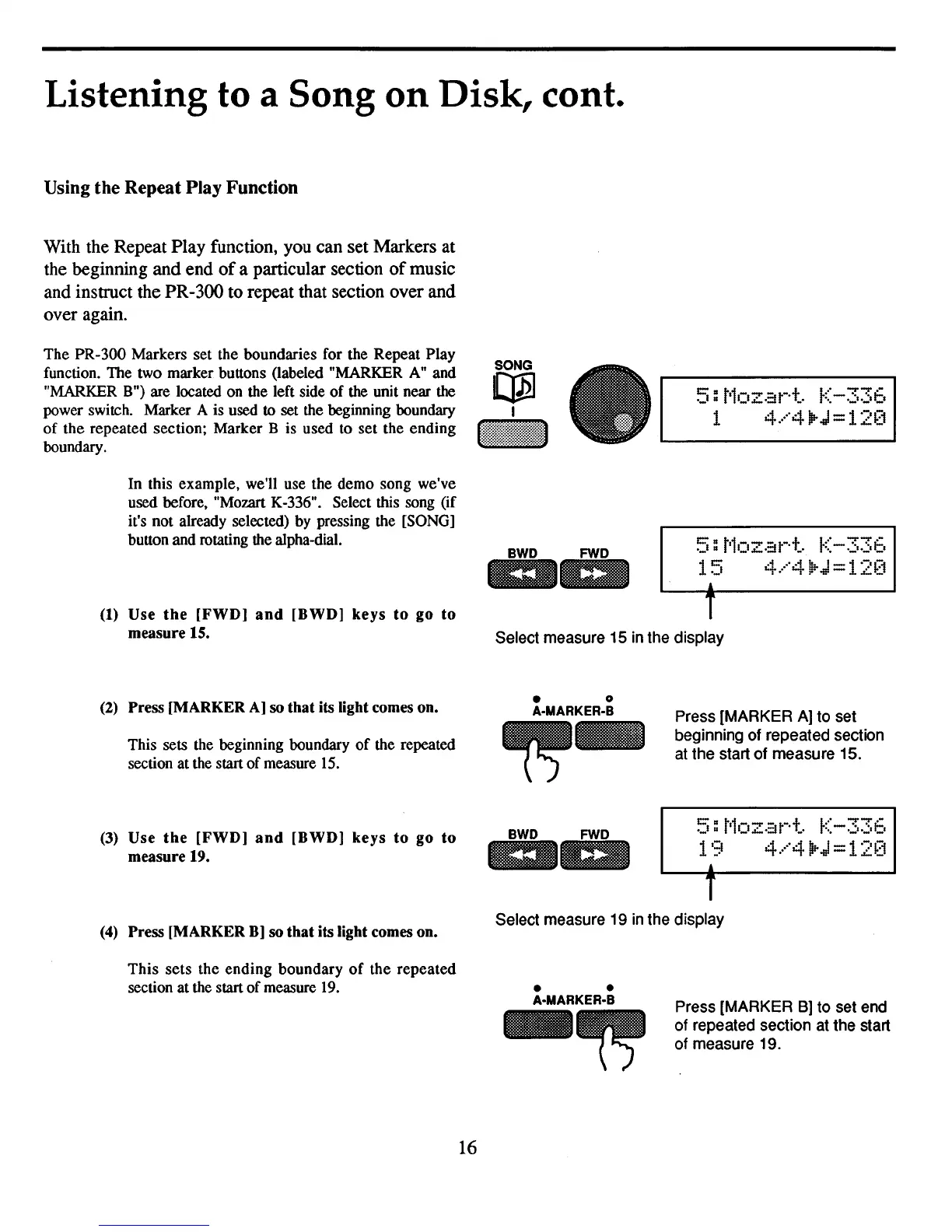 repeated section; Marker B is used to set the ending