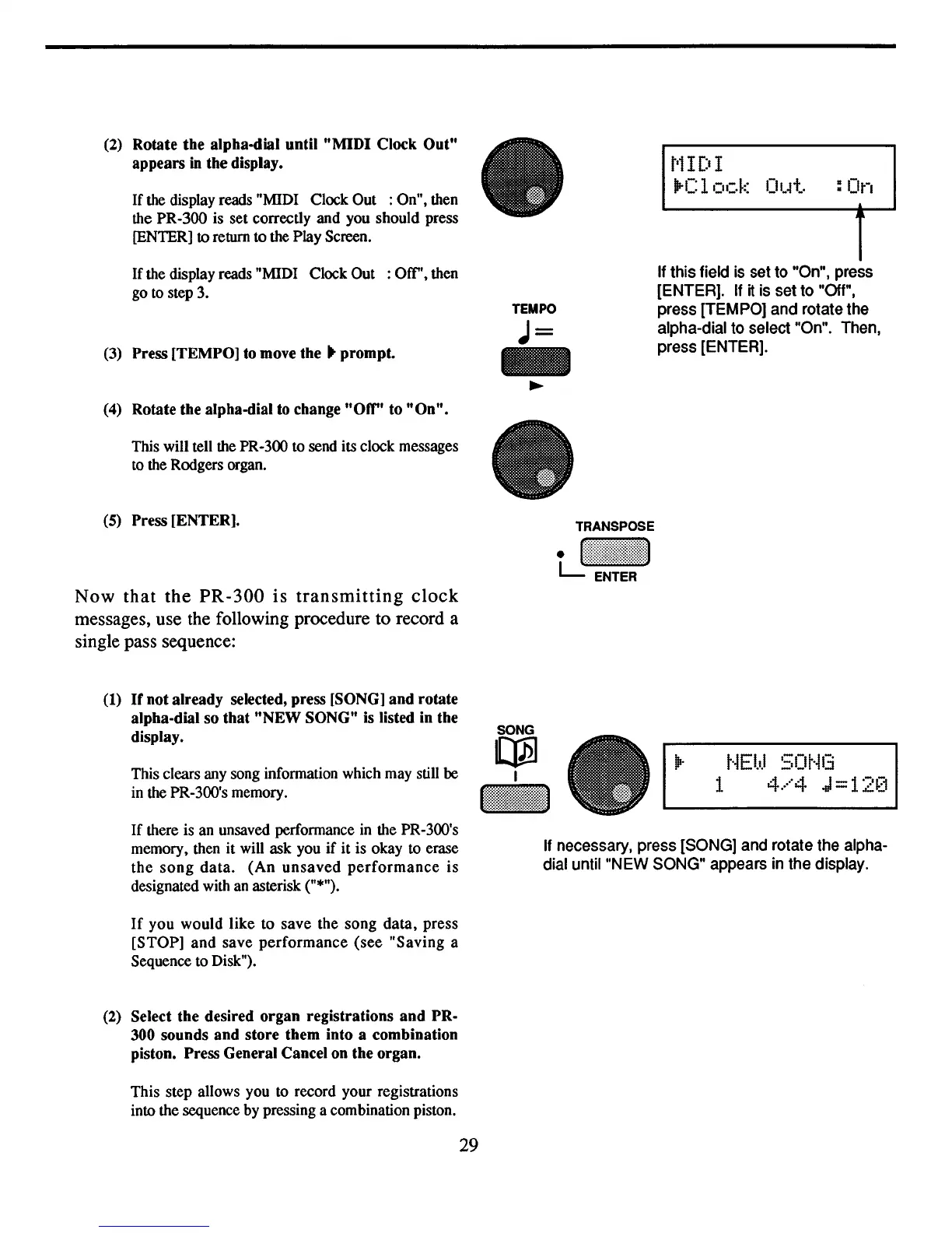 the display reads "MIDI Clock Out :