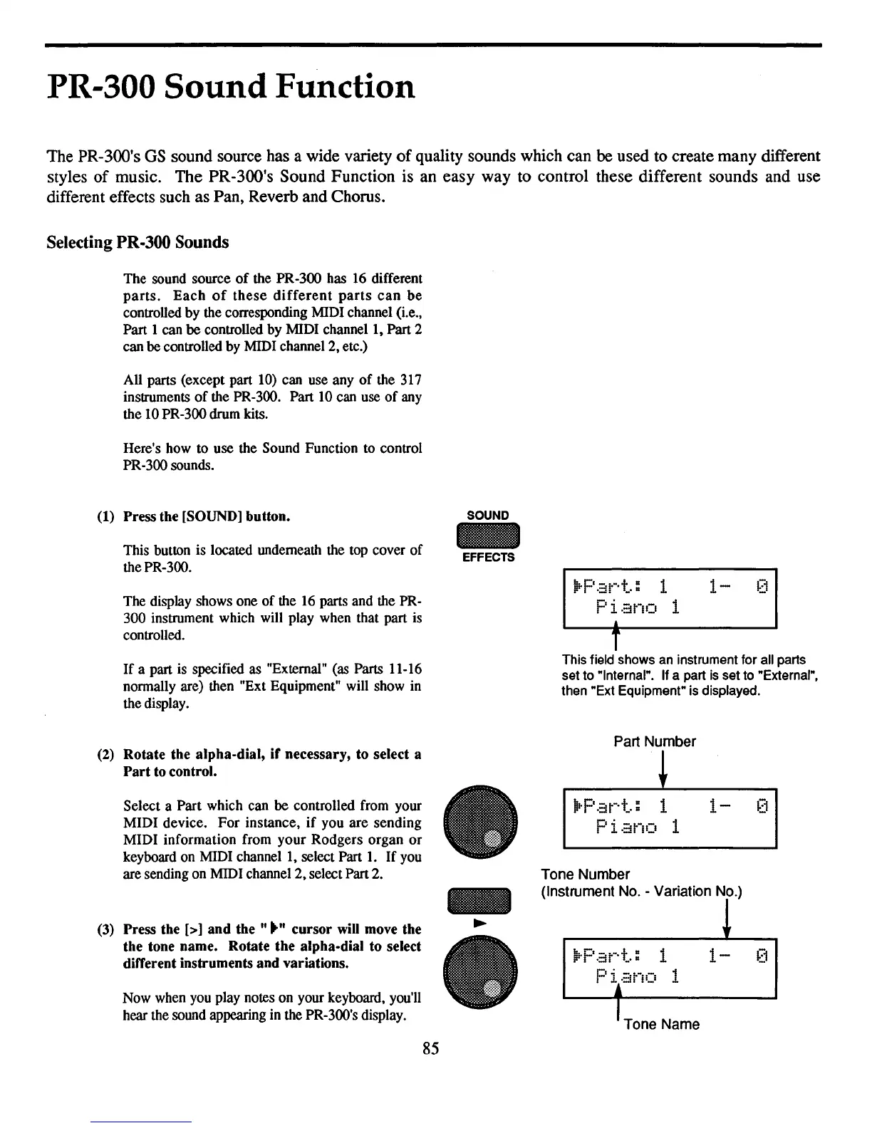 music. The PR-300's Sound Function is an easy way to control these different sounds and use