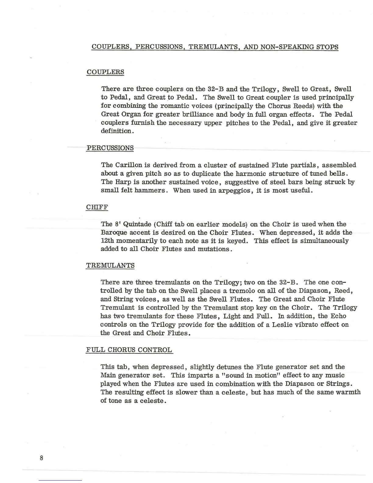 COUPLERS, PERCUSSIONS, TREMULANTS,