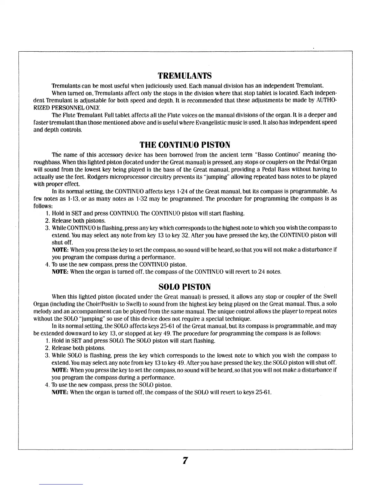 Rodgers Windsor 840 Pipe Augmented - Tremulants; The Continuo Piston; Solo Piston