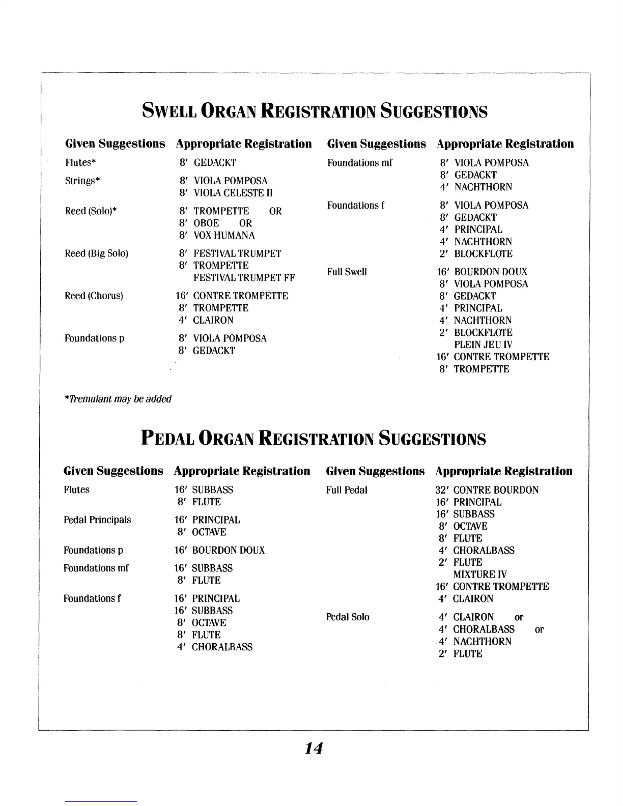 ORGAN REGISTRATION SUGGESTIONS