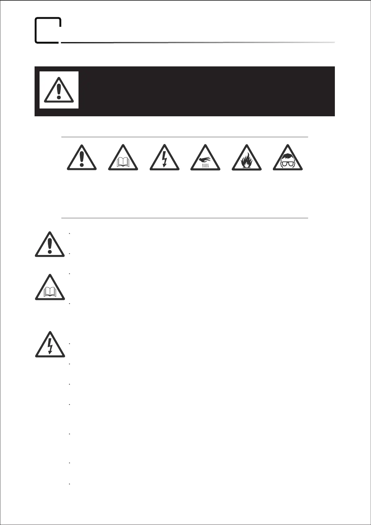 tions listed below and observe all warnings in this manual and printed on the product.