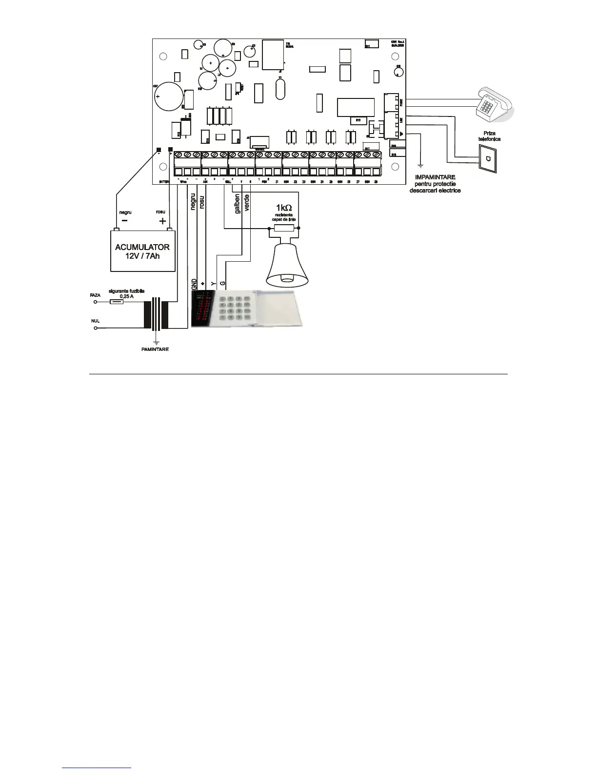 Siren output. „BELL+” is a positive trigger output (PNP), with 1K EOL supervision resistor.