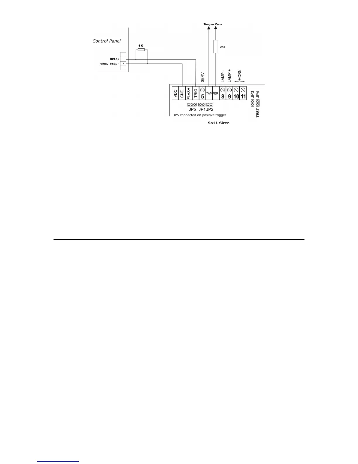 2. If both internal and external sirens are used simultaneously, the 2K2 resistor should be mounted in the