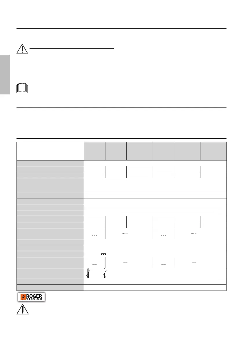 values shown in the table. The values are guaranteed with original ROGER TECHNOLOGY accessories ONLY.