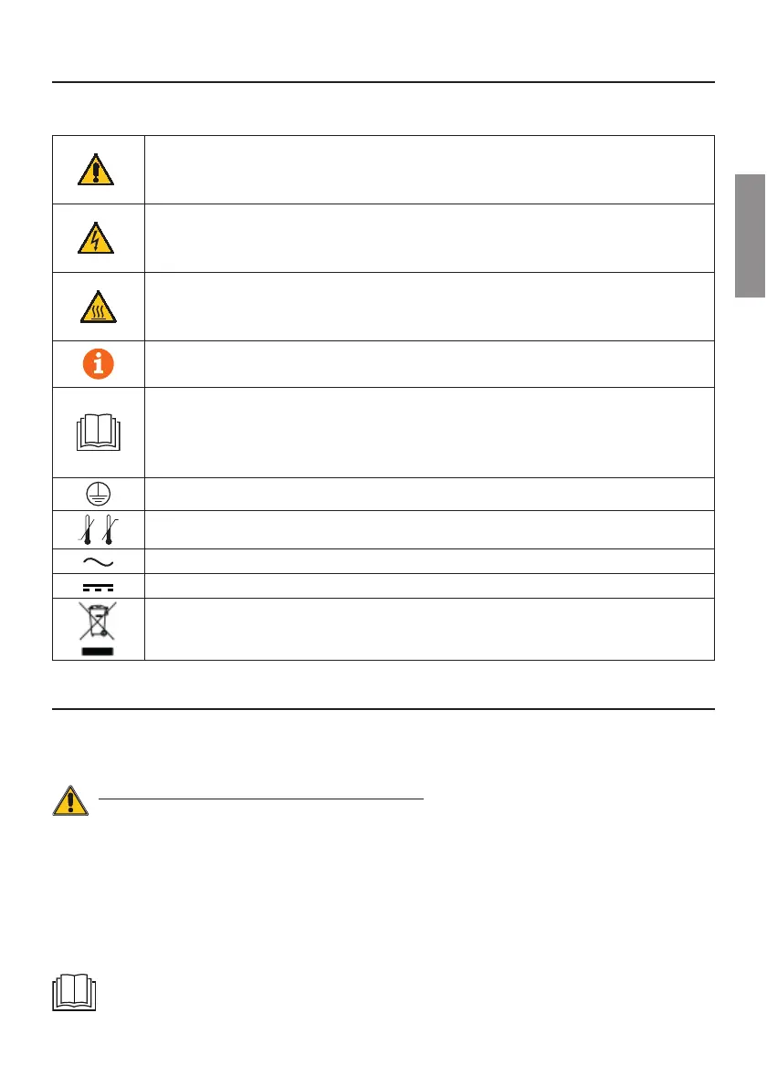 The symbols and their meaning in the manual or on the product label are