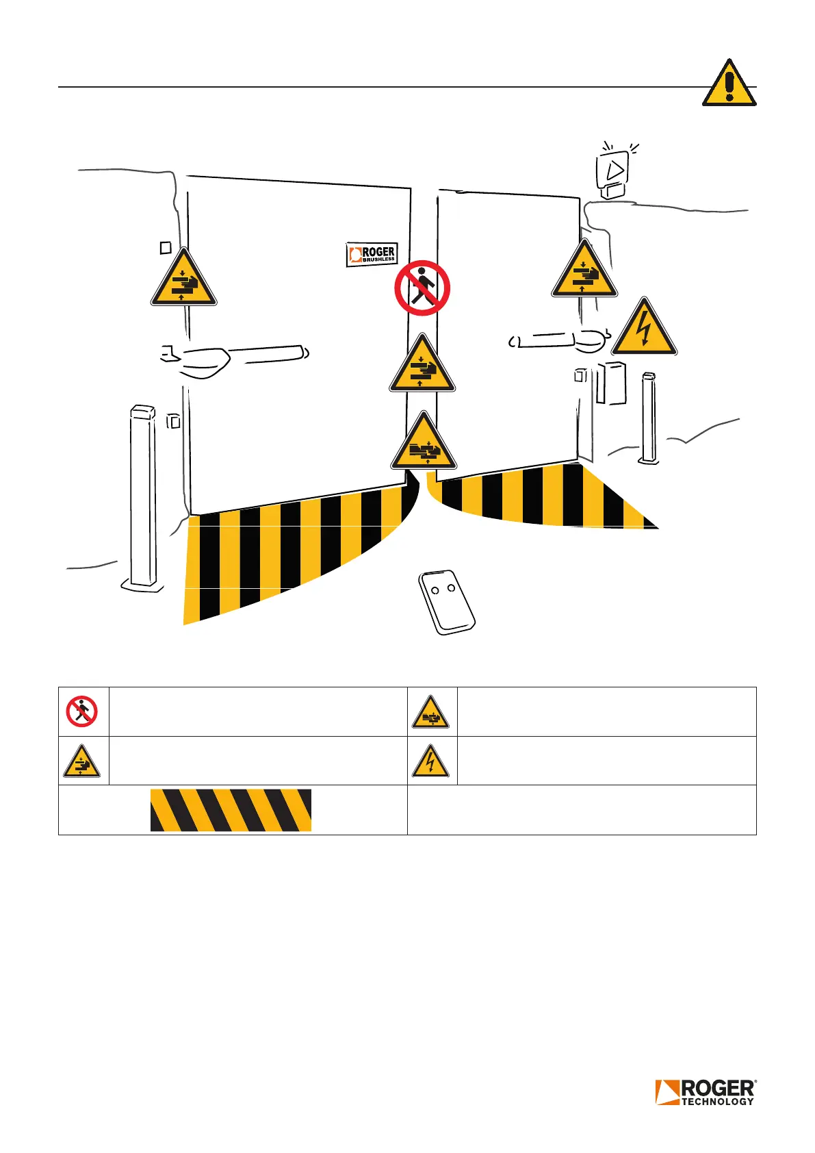 Do not enter the range of action of the motorized door or gate.