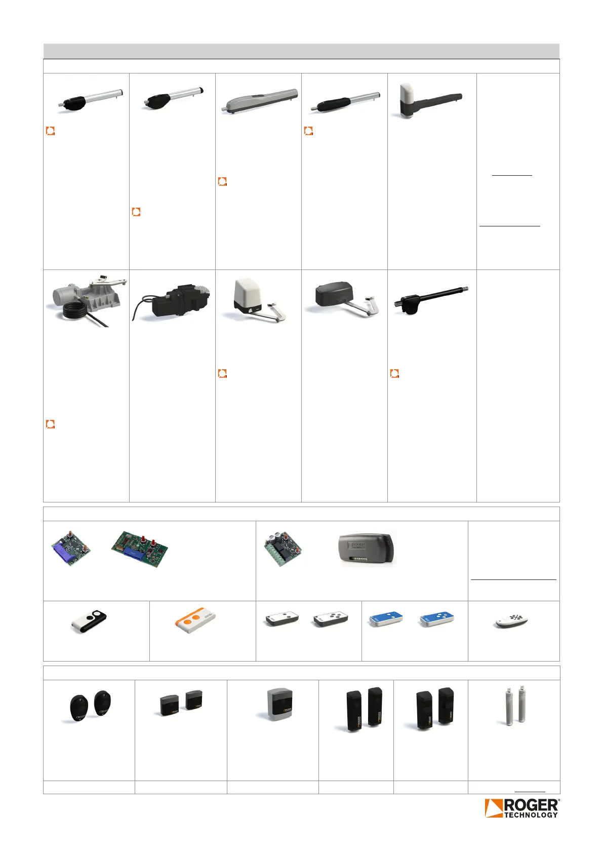Roger BE20 Series - PRODUCTS INSTALLED; Motor and Control Unit Models; Radio Receivers, Remotes, and Photocells