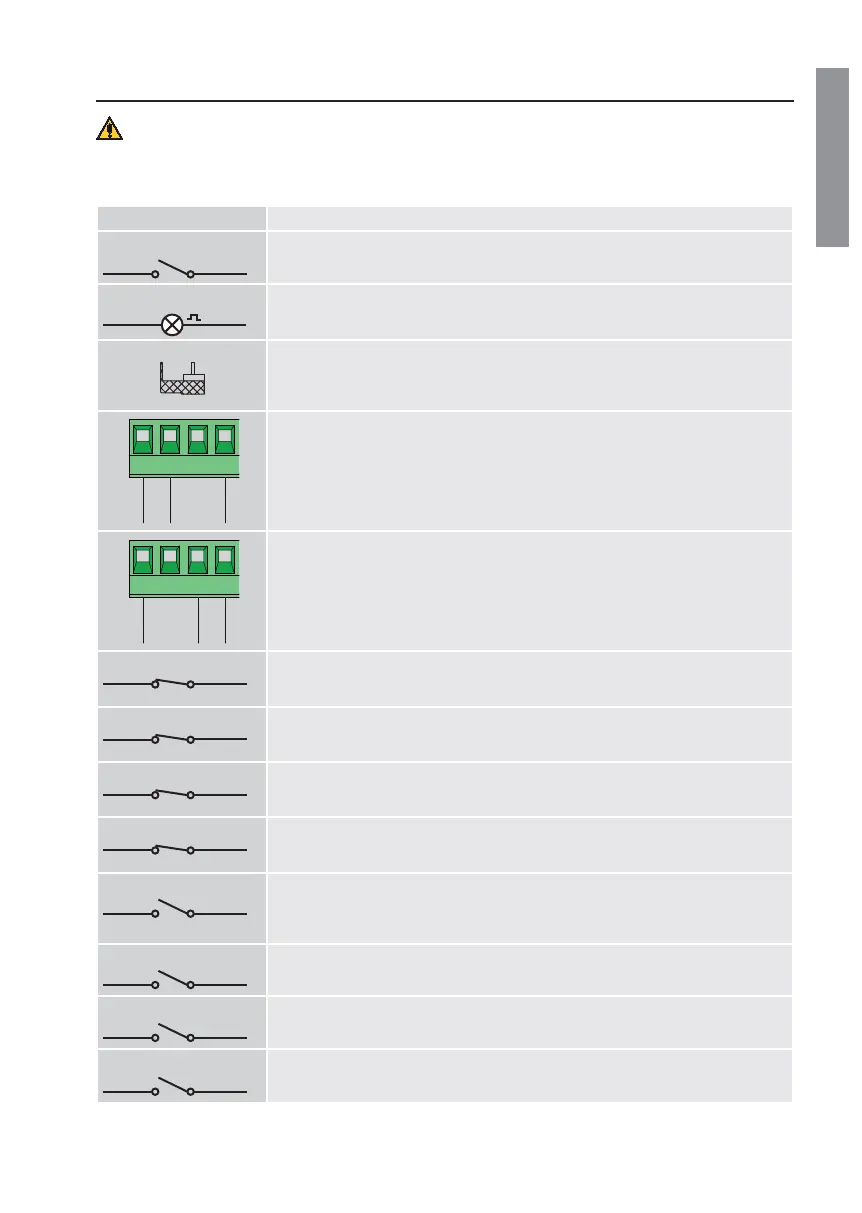 Le sicurezze con contatto N.C., se non installate devono essere ponticellate ai morsetti COM, oppure