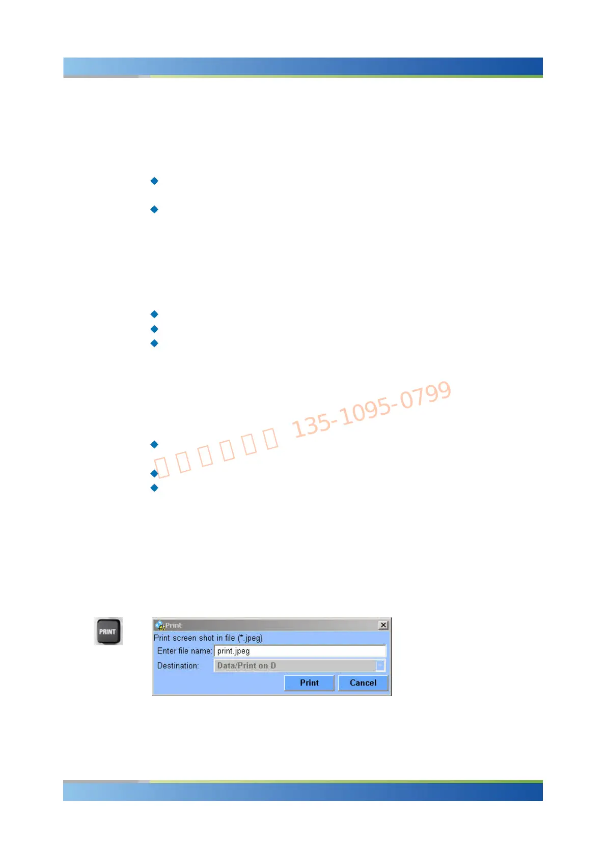 The "Print" dialog prints the current screen contents to a file, to be saved on partition