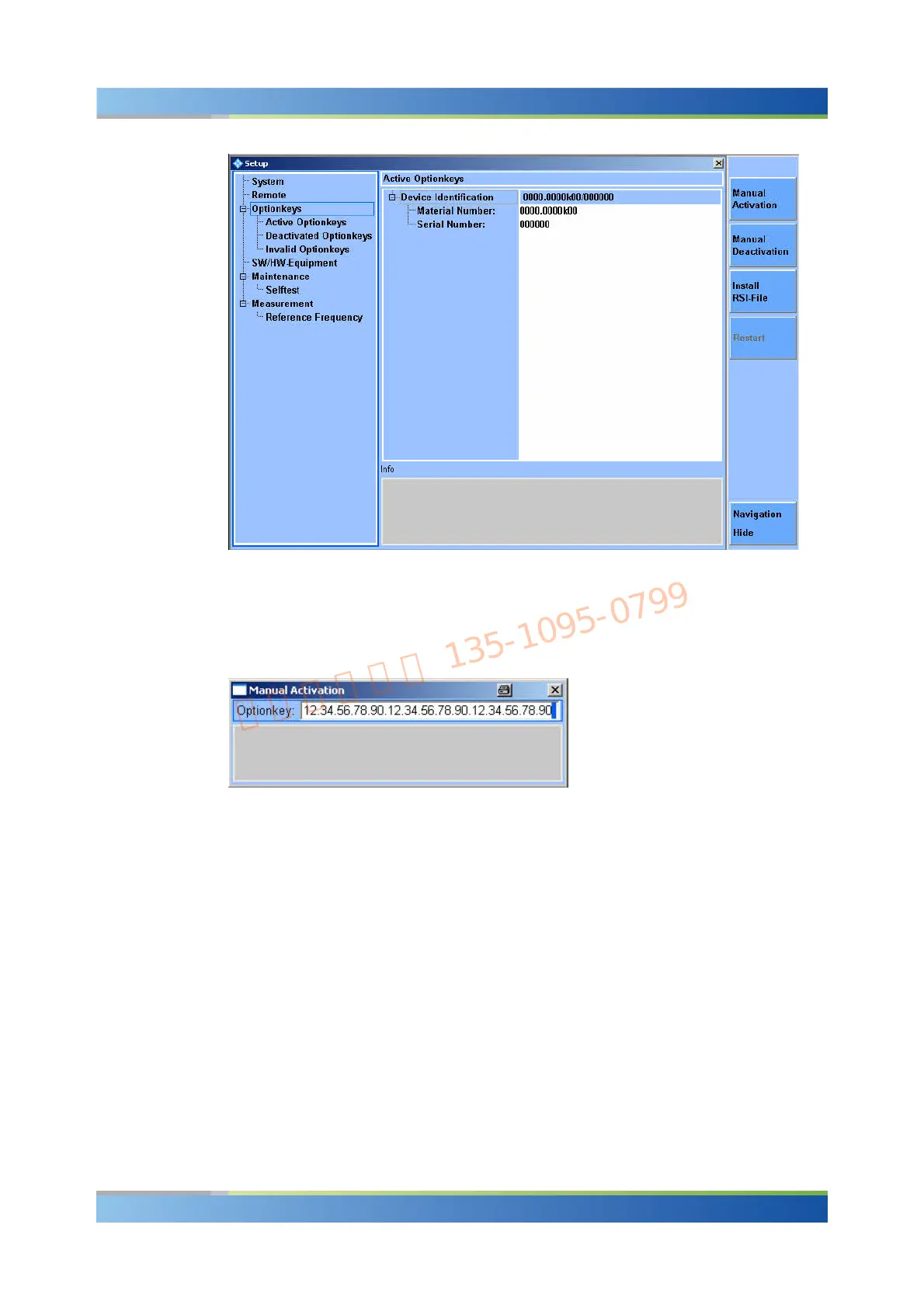 Avoid typing in your key code; use an .rsi (Rohde & Schwarz Installation) file instead.