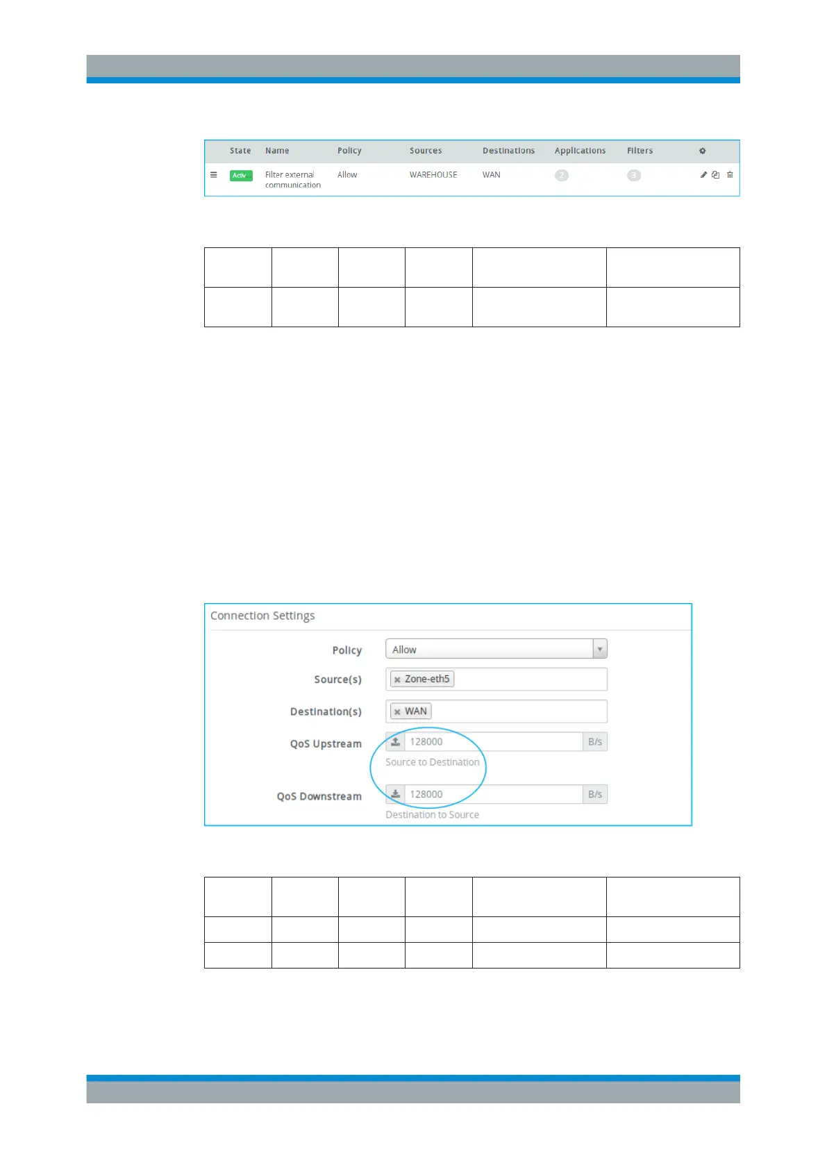 upstream and downstream traffic. The QoS feature is enabled in a rule that allows