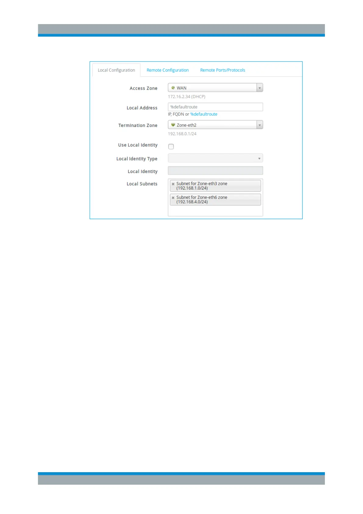 Tip: If the local network is behind a NAT device, enter %defaultroute or click