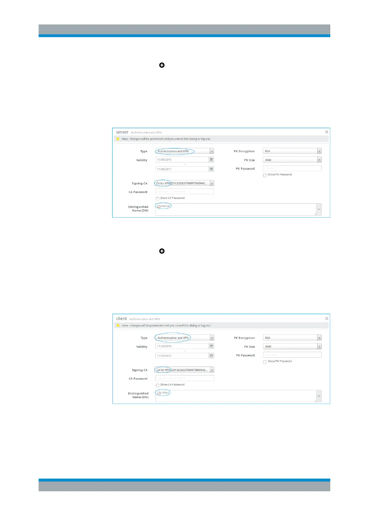 Click the plus button in the item list bar header to create a VPN certificate for