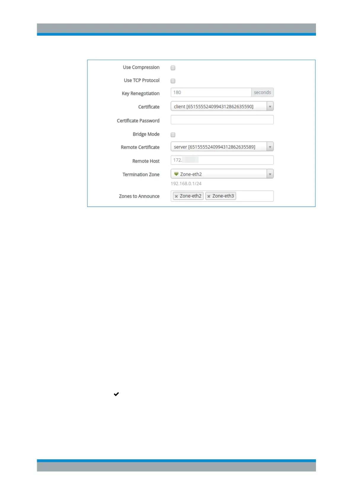 3. Select the "Remote Certificate" created and imported earlier for the remote site
