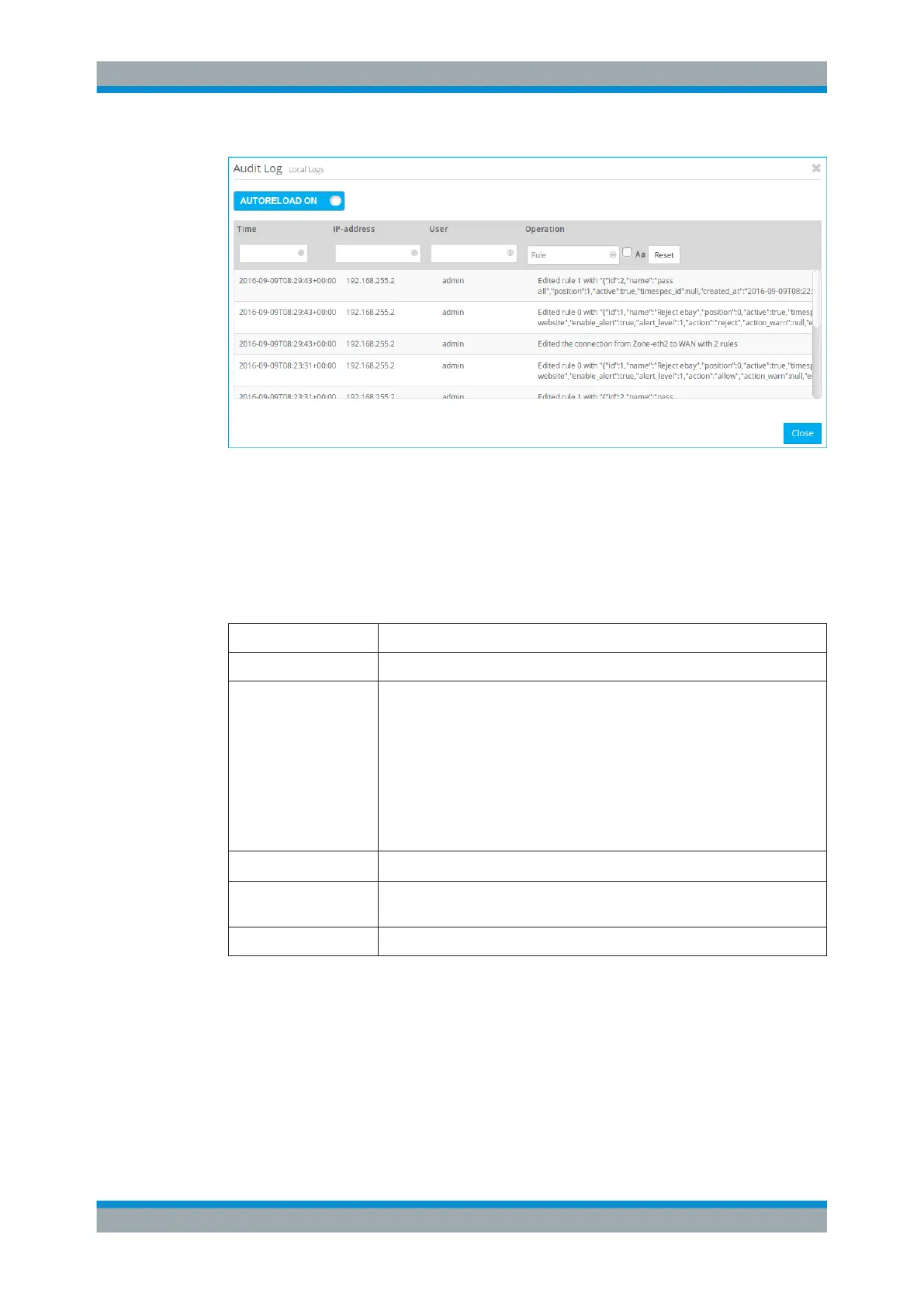 Figure 3-7: Sample filtered Audit log.