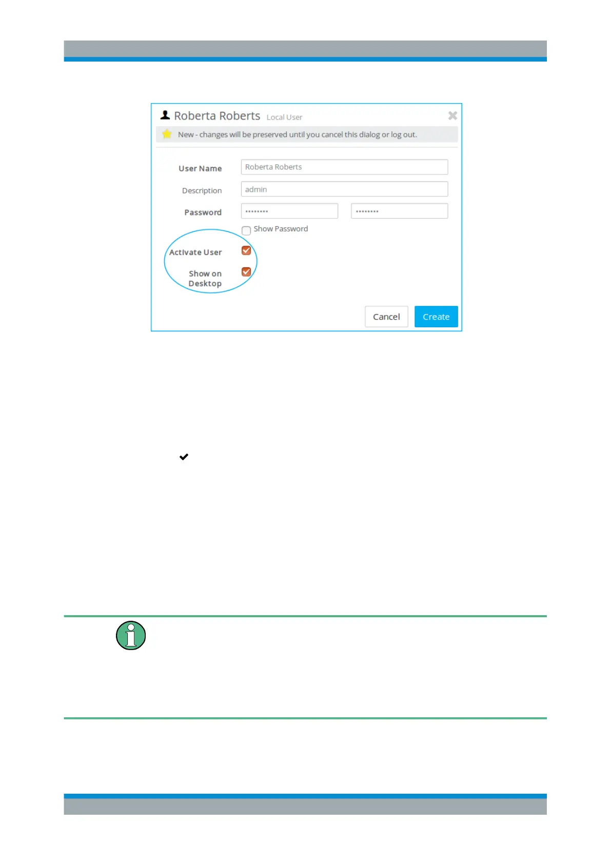add the new user to the list of available local VPN users or "Cancel" to reject the crea-