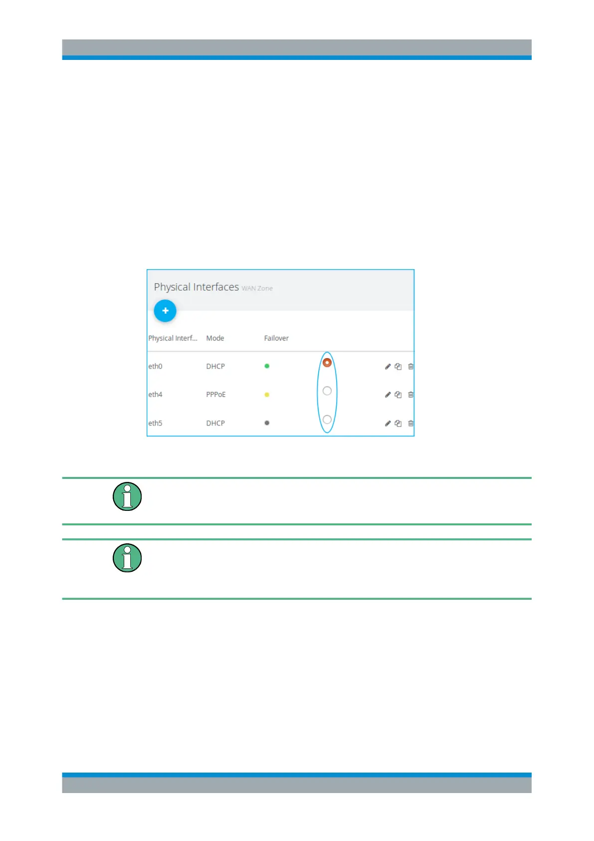 Interfaces can only be used for manual failover and their status is only displayed if they