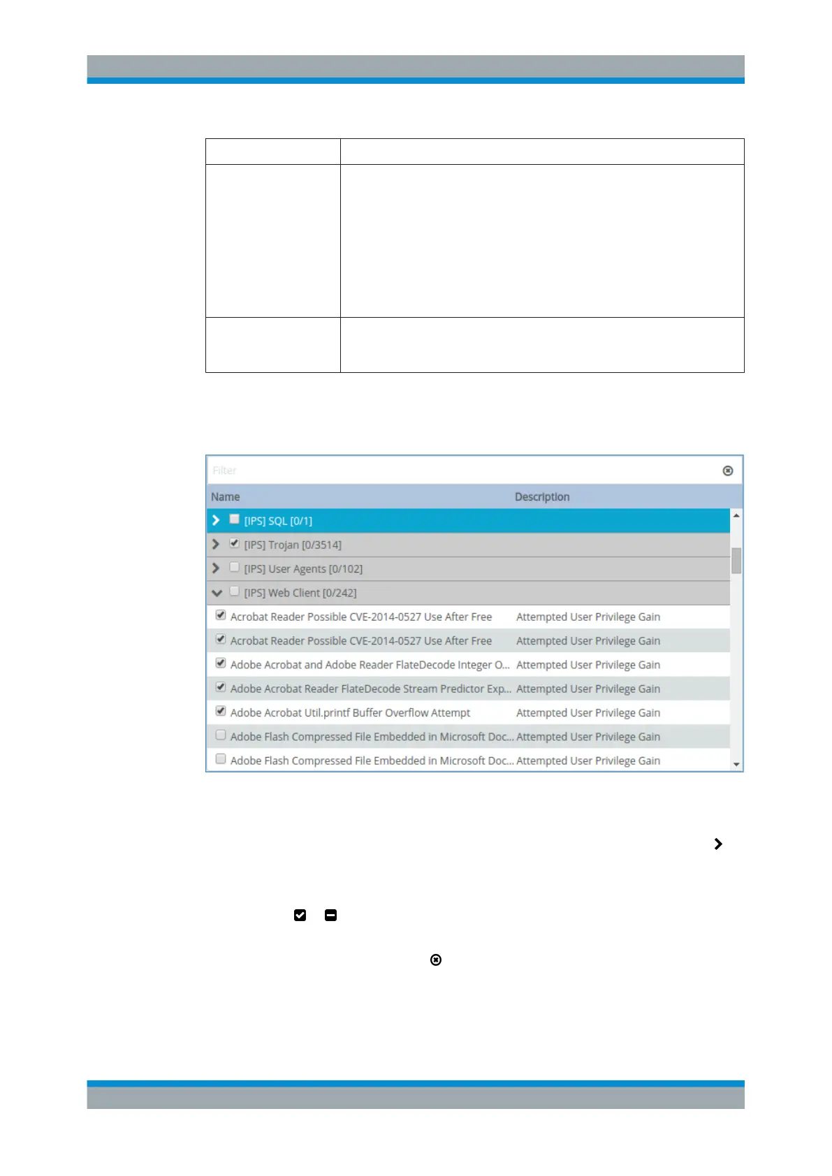 icon next to a category's name, the table is expanded. It then displays all the rules that