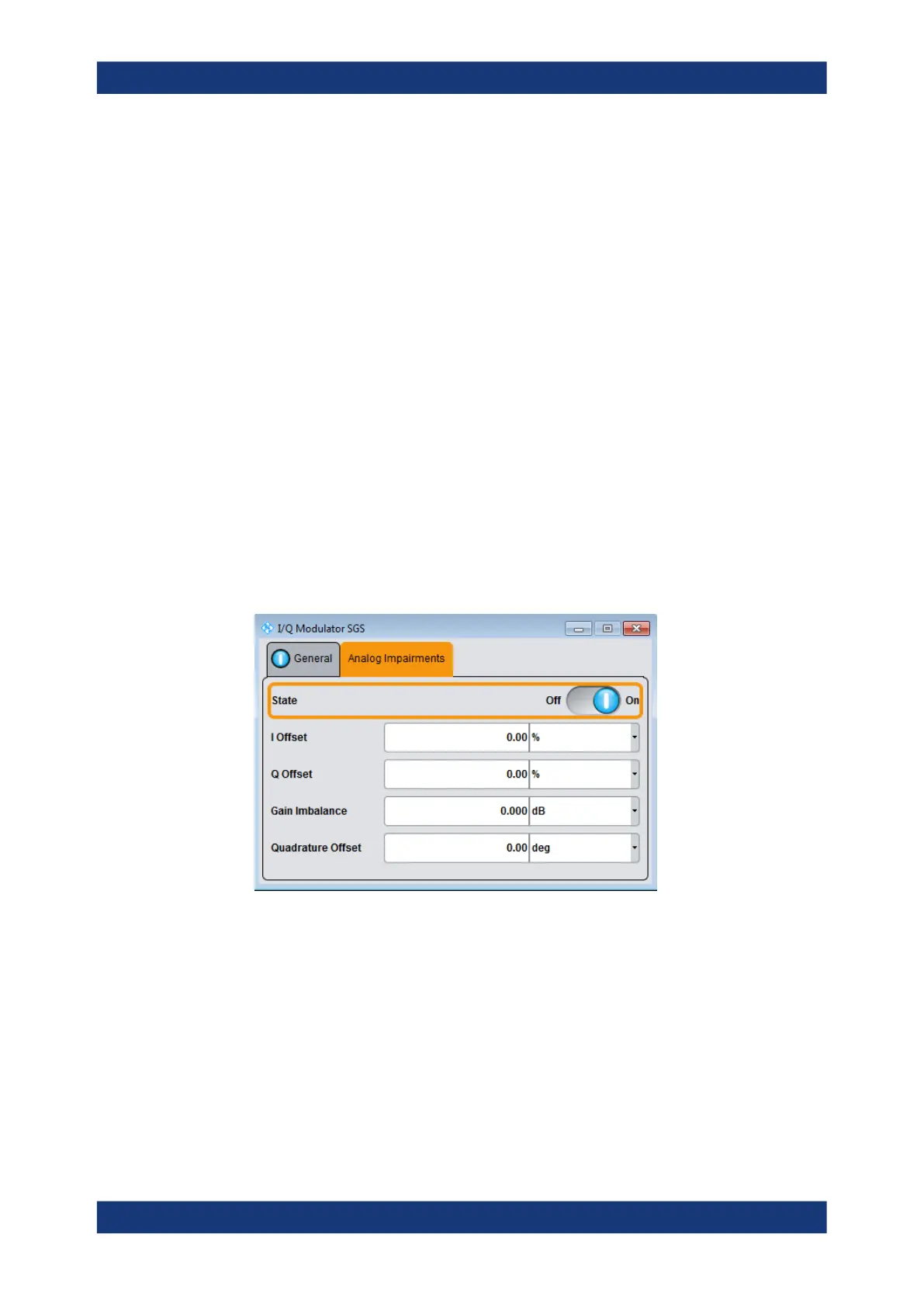 ► Select "SGMA-GUI > Instrument Name > I/Q Settings > Analog Impairments".