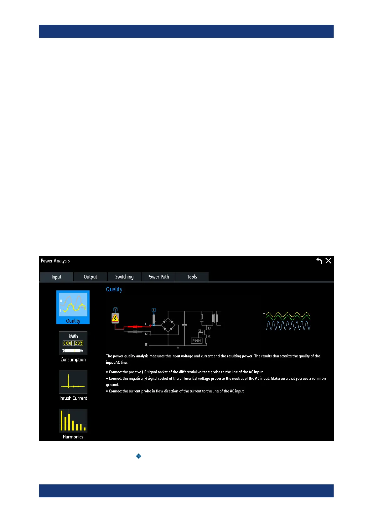 ● Connect the current probe in flow direction of the current to the line of the AC