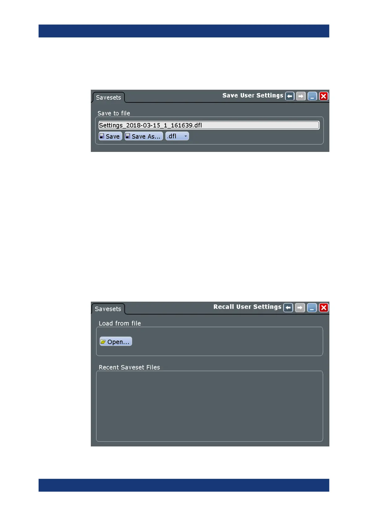 Access: [FILE] key > "Recall" tab > "Savesets"