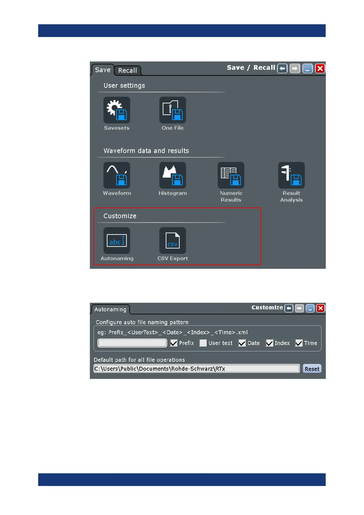 data that is saved, for example, Histogram, RefCurve, Settings.