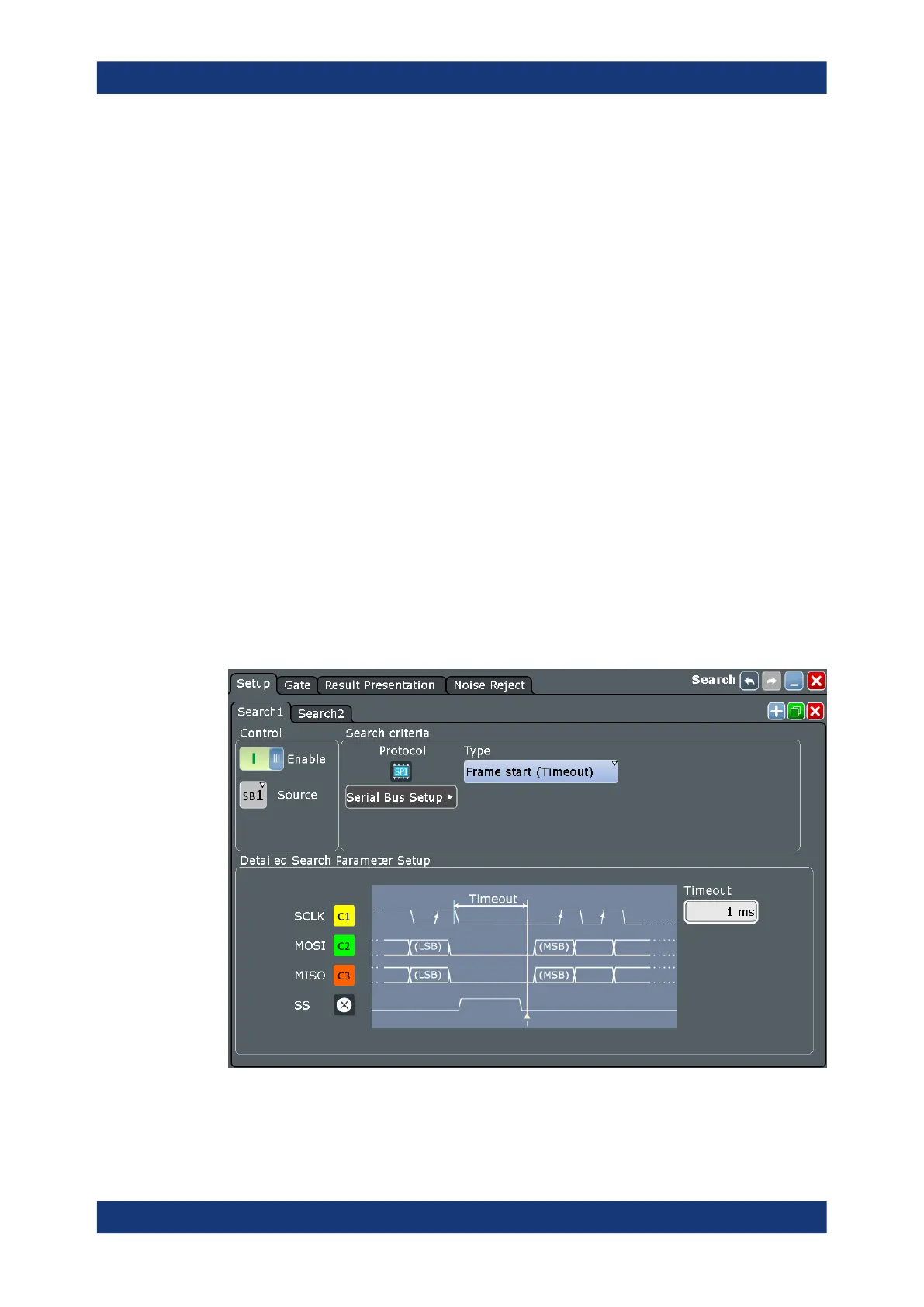To search on decoded data, set the search "Source" to the serial bus that is configured