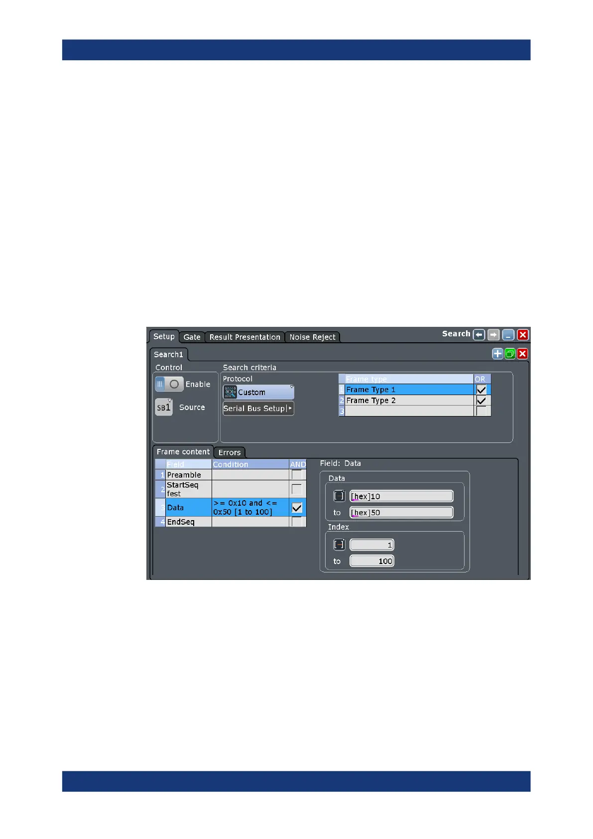 settings of the custom serial bus, can be specified in the tabs below the "Search crite-